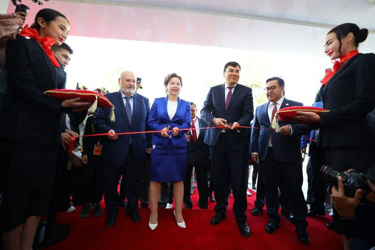 БДКИ ректори Владимир Малишев, РФ Маданият вазири ўринбосари Ольга Ярилова, Бош вазир ўринбосари Азиз Абдуҳакимов ва Ўзбекистон Кинематография агентлиги директори Фирдавс Абдуҳолиқов тантанали равишда лентани кесмоқдалар. «Фарғона» фотосурати
