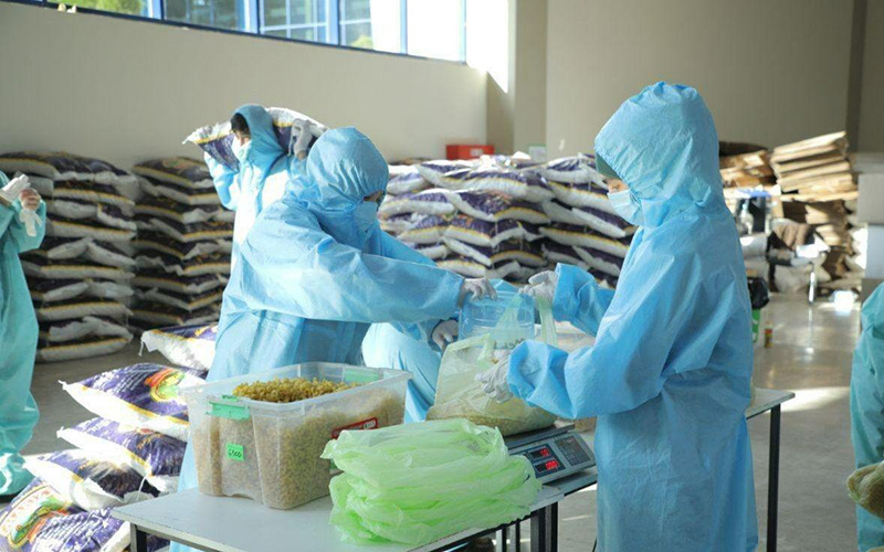 Волонтёрлар озиқ-овқат маҳсулотларини тахламоқда., 2020 йил апрель. Тошкент ҳокимлиги матбуот хизмати фотосурати
