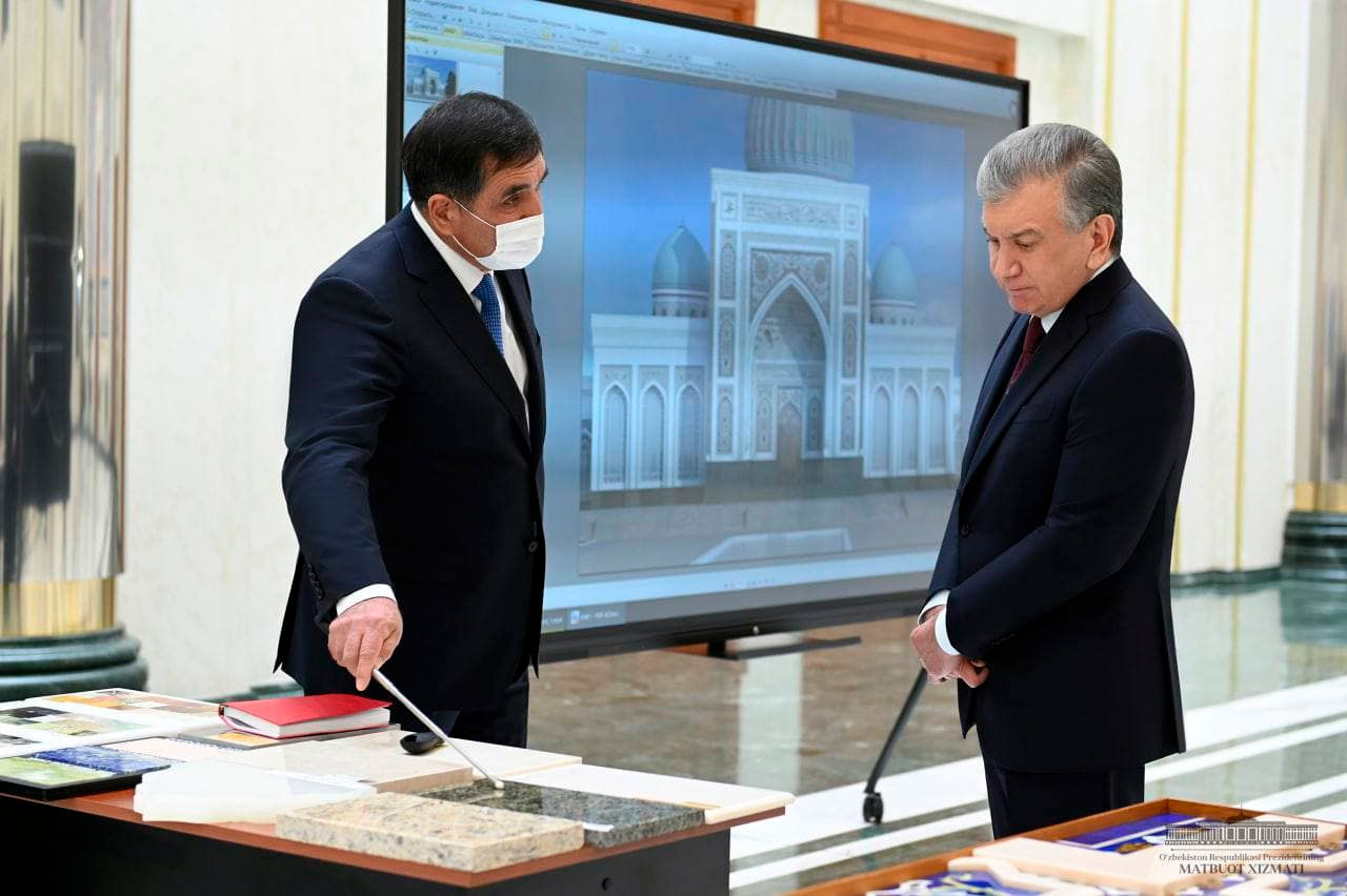 Маълумки, Самарқанд вилоятида Имом Бухорий мажмуаси янгидан барпо этилмоқда. Бугунги кунда бинолар қад ростлаб, пардозлаш ишларига оз фурсат қолди. Тақдимотда мажмуанинг ички ва ташқи кўринишига оид чизмалар кўриб чиқилди. Унга кўра, мажмуа деворлари миллий нақшлар, пардозбоп тошлар билан сайқалланади. Имом Бухорий мақбарасида наққошлик ва хаттотлик санъати уйғунлашади. Унинг деворларига қадимий услубда Қуръони карим суралари ва ҳадислар ёзилади.